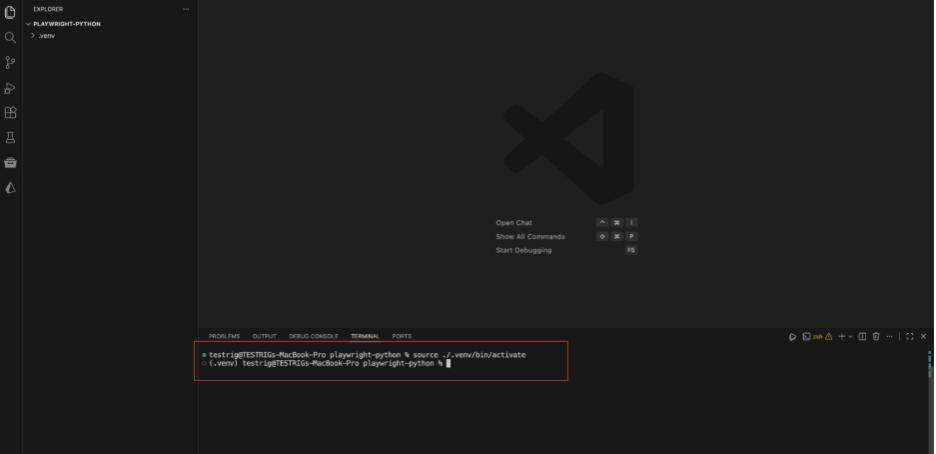 Now, activate the virtual environment so the terminal recognizes the isolated workspace when installing and running packages.